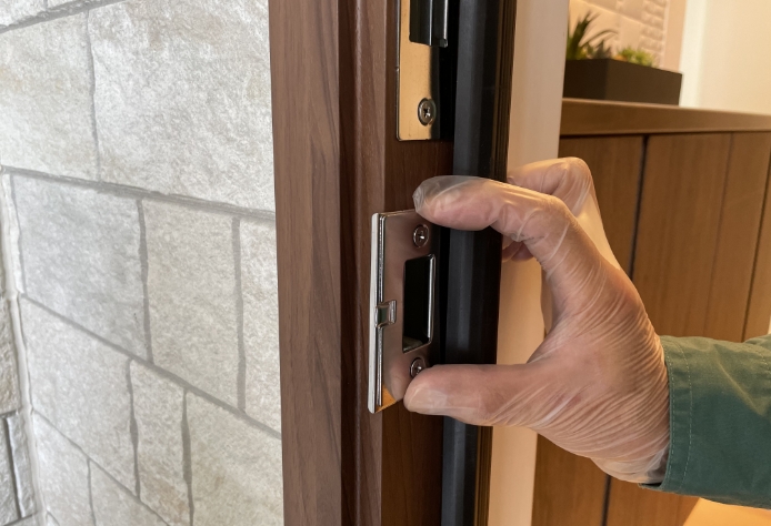 ドア本体のかんぬき(ラッチ)とドア枠側の穴(ラッチ受け)がズレていると生じることがあります。